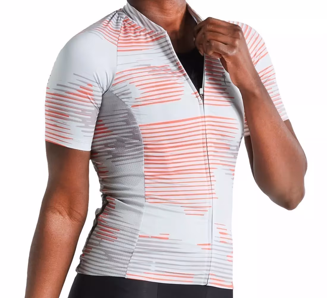 Women's cycling jersey Specialized SL Blur SS provides race-ready performance in a package that's built to take some abuse. It's made of elastic, lightweight and comfortable fabric, that also ensures good moisture management. Three standard pockets provide room for all your important items. The full-length front zipper enables you to control airflow during intense activities or cold descents. UV 50 protects your skin from harmful UV radiation. Slim Fit offers a precise fit like a second skin. Created for long hours in the saddle.