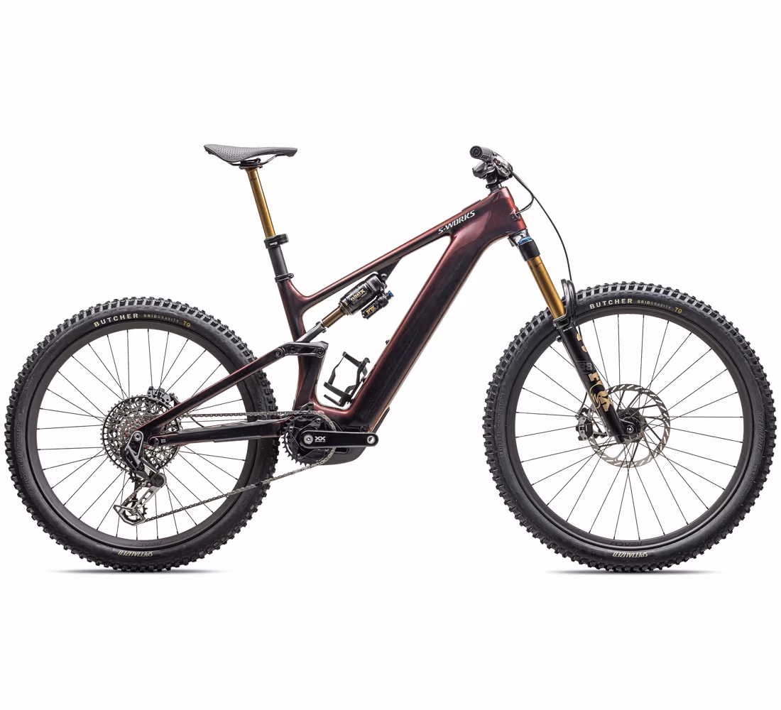 Naturalmente, questa non sarebbe una S-Works se non avesse componenti di alta qualità: trasmissione elettronica SRAM XX Eagle a 12 velocita, freni SRAM Maven Ultimate, forcella FOX FLOAT 38 Factory con 160 mm di escursione, ammortizzatore FOX FLOAT X Factory con tecnologia GENIE, cerchi in carbonio Roval Traverse HD e pneumatici Butcher Grid Gravity.