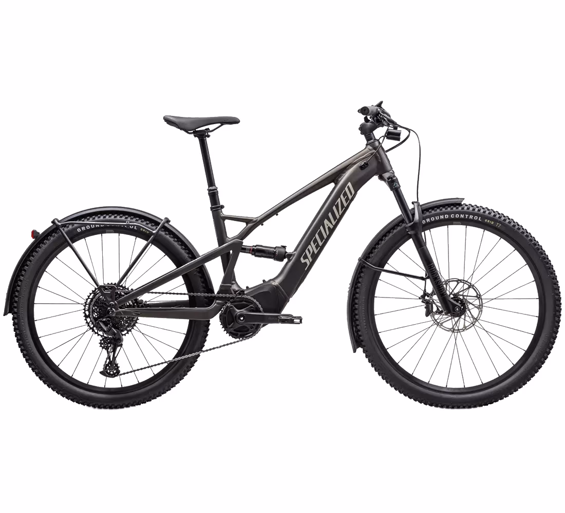 Specialized E5 Aluminum, configurazione mullet nelle taglie M-XL, motore integrato vicino al BB, integrata nel tubo obliquo, passaggio cavi interno, cavalletto, portapacchi e parafanghi
