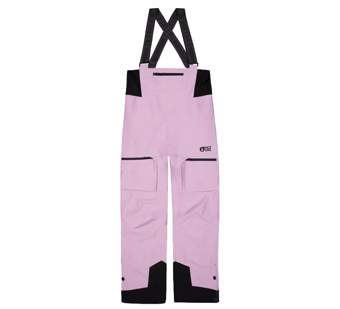 Picture Allea women's pants are high-performance technical pants designed for demanding freeride skiing, ski touring, and splitboarding enthusiasts. These 3-layer pants made from stretchy Stretch Xpore 3L fabric provide exceptional waterproof protection with a 25,000 mm water column and high breathability of 20,000 g/m2/24h, keeping your legs dry and protected even in the harshest weather conditions. The pants feature a Teflon Ecoelite durable water-repellent treatment and taped seams for additional waterproofing. Adjustable suspenders, an ergonomic waist, and articulated knees ensure a perfect fit and maximum freedom of movement, essential for both climbing and descending snowy slopes. For added comfort, the pants include thigh vents for quick cooling during intense activities and snow gaiters to prevent snow from entering your boots. The lower leg area is reinforced for increased durability.