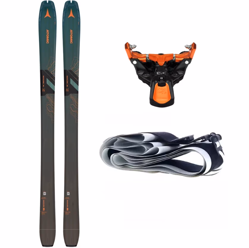Il set e' composto dagli sci Atomic Backland 95, attacchi G3 Ion 12 100mm e pelli Atomic.