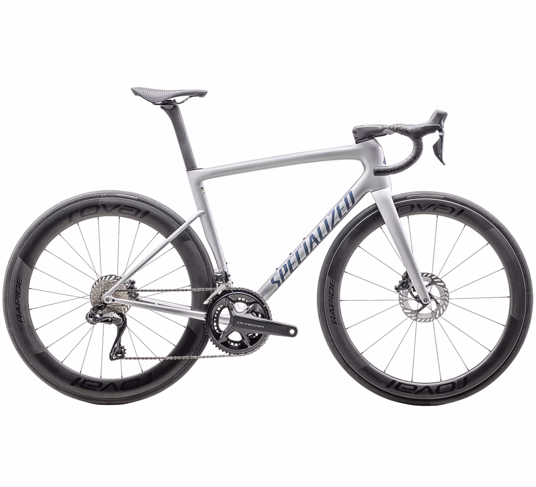 Tarmac SL8 Pro zagotavlja izjemno zmogljivost s celotnim pogonskim sklopom skupine Shimano Ultegra 8100 Di2 z merilnikom moči, plaščema Roval Rapide CL II, ki sta pripravljena na uporabo tubeless, zavorami Shimano Ultegra Di2 in krmilom Roval Rapide s krmilnim ležajem SL7. S Tarmacom si pripravljen na dirkanje!