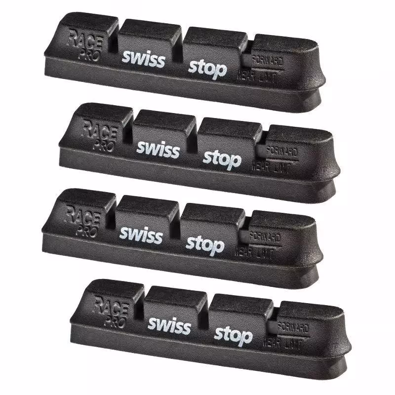 Swissstop Race Pro zavorne obloge ti pomagajo obvladovati tvoje kolesarske podvige in poskrbijo za ustrezno varnost na poti. Tehnologom pri podjetju je z njimi uspelo izpopolniti že predhodno odlične zavorne obloge iz kompozitnega materiala Green High Performance II (GHP II). S sodelovanjem s podjetjem Rex Articoli, ki je specialist na področju tehničnih zavor, so razvili rešitev, ki v primerjavi z kompozitom GHP II zmanjša zavorno pot za 8 metrov in vas tako s hitrosti 60km/h popolnoma ustavi v pičlih 35 metrih. Zavorne obloge delujejo izredno linearno in za delovanje potrebujejo manj sile. Primerne so za vse aluminijaste obroče cestnih koles ter se izvrstno odnesejo v prav vseh vremenskih razmerah in ohranijo zavorno moč tudi v dežju.
